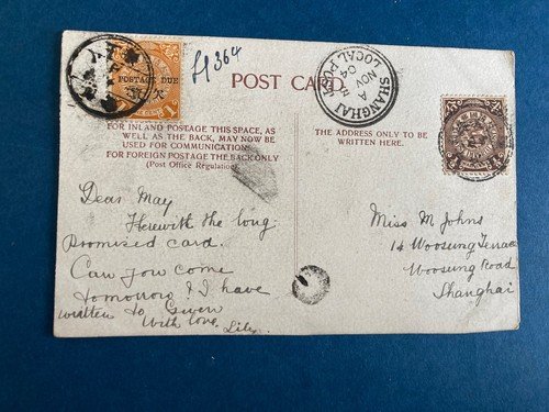 | Postal History China Shanghai Local Post Postcard to Shanghai 1904 | Auction | $224 |
