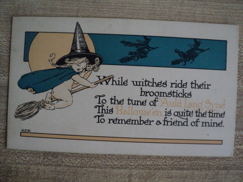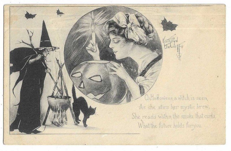 | Halloween Postcard Artist Signed Kathryn Elliott "On Hallowee a witch is..." | Auction | $282 |