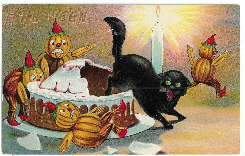 | Valentine & Son Pub. Halloween Postcard Cat jumping out of cake | Auction | $669 |