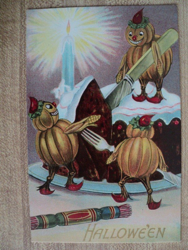 | HALLOWEEN Jack-O-Lantern People in Cake vtg. Valentine & Sons embossed Postcard | Auction | $294 |