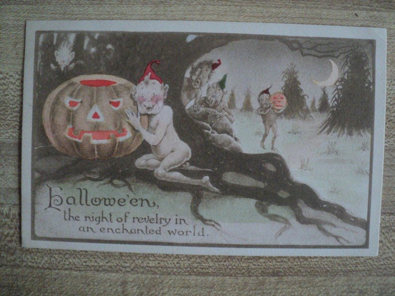 | HALLOWEEN WITCH's WAND Jack-O-Lantern ELVES vintage German embossed Postcard | Auction | $3750 |