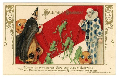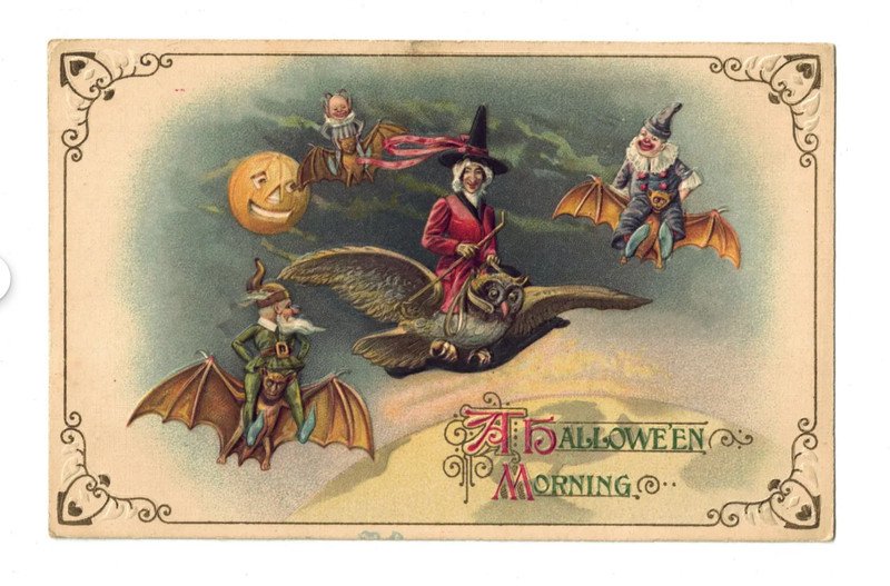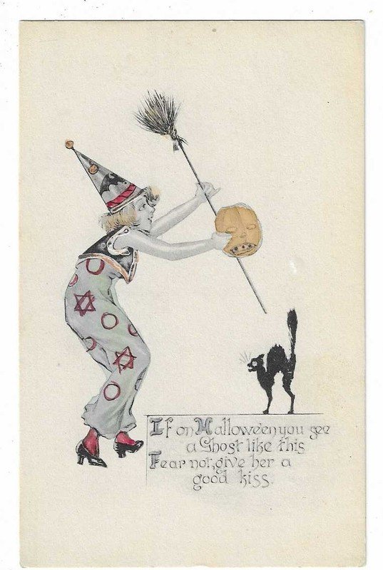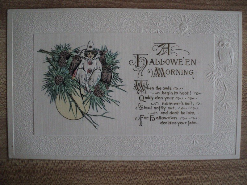 | HALLOWEEN MORNING Clown with Owls vintage German embossed Postcard | Auction | $998 |