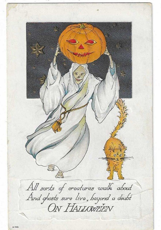 | HALLOWEEN WISH Jack-O-Lantern Man & Lady vintage German embossed Postcard | Auction | $444 |