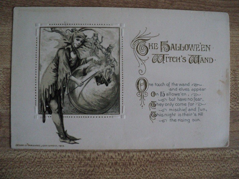 | HALLOWEEN The Witch's Wand w/ Elves vintage John Wisch 1913 embossed Postcard | Auction | $464 |