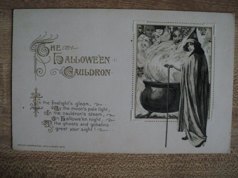 | HALLOWEEN Witch Stirring Cauldron vintage 1913 John Winsch embossed Postcard | Auction | $678 |