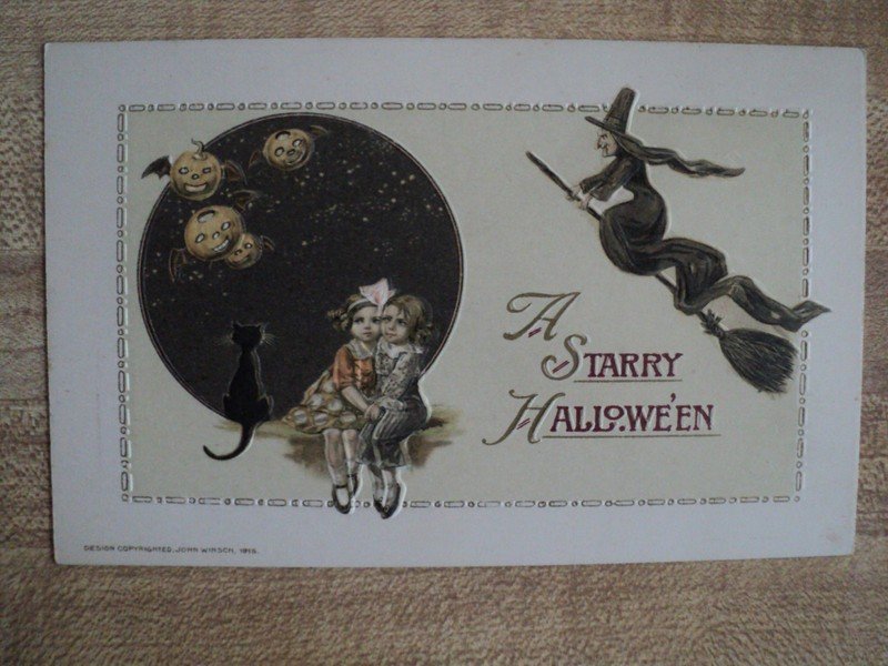 | HALLOWEEN Kids Witch & Black Cat vintage John Winsch 1915 embossed Postcard | Auction | $234 |